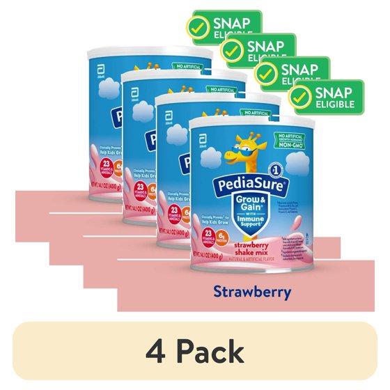(4 pack) PediaSure Grow & Gain Shake Mix Powder, Strawberry, 14.1 oz Can, 8 Servings