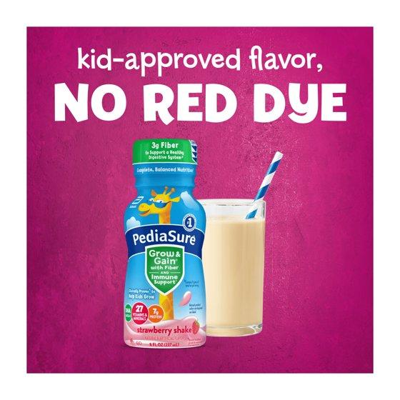 - PediaSure Grow & Gain with Fiber & Immune Support, Strawberry, 8-fl-oz Bottle, Pack of 6