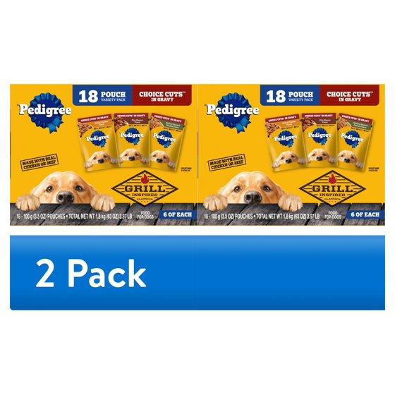(2 pack) Pedigree Choice Cuts In Gravy Adult Soft Wet Dog Food Variety Pack, 3.5 Oz Pouches (18 Pack)