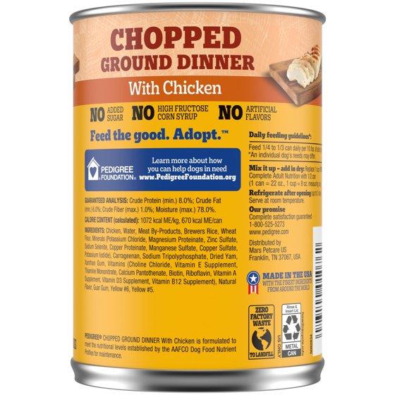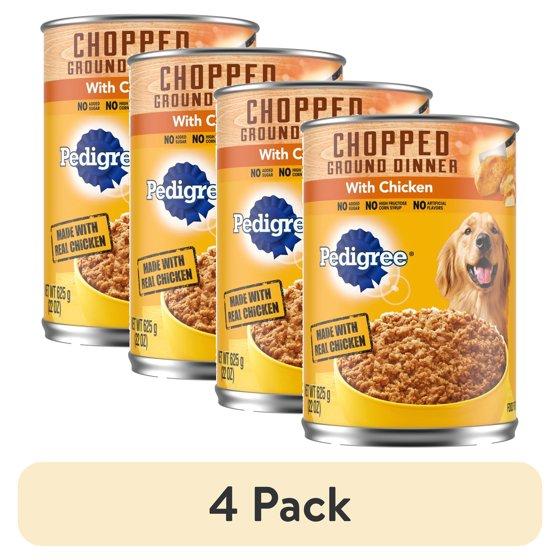 (4 pack) Pedigree Chopped Ground Dinner With Chicken Adult Soft Wet Dog Food, (12) 22 oz Cans