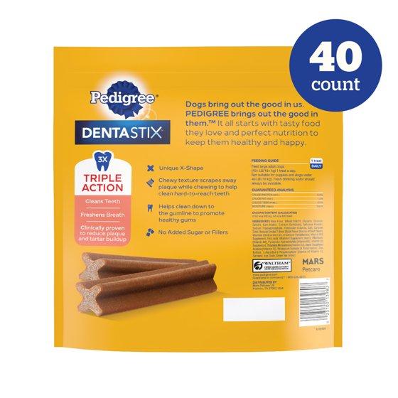 - Pedigree Dentastix Large Breed Dental Care Treats are made with no added sugar or fillers.