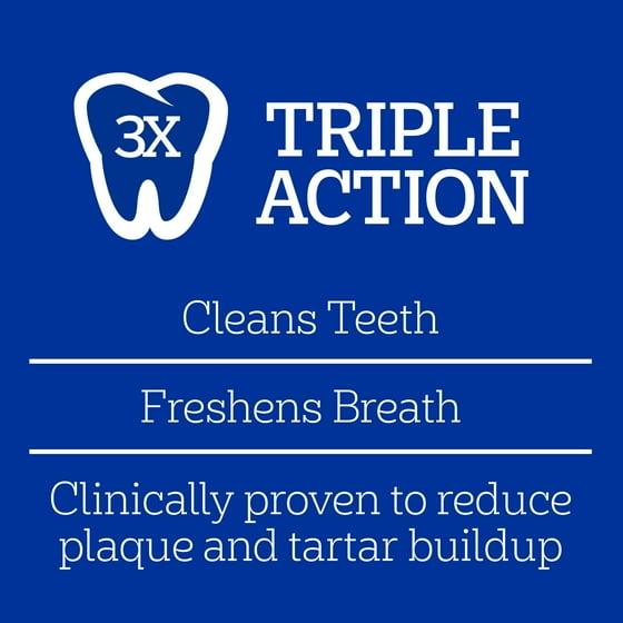 - Comes with triple action which reduces tartar buildup, cleans teeth, and freshens breath.