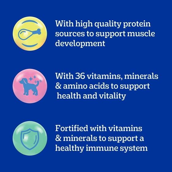 INGREDIENTS: Ground Whole Grain Corn, Chicken By-Product Meal, Ground Whole Grain Wheat, Soybean Meal, Brewers Rice, Animal Fat (Source of Omega 6 Fatty Acids [Preserved with BHA and Citric Acid]), Meat and Bone Meal, Natural Flavor (Source of Chicken Flavor), Dried Brewers Yeast, Salt, Monocalcium Phosphate, Fish Oil ([Source of DHA] Preserved with Mixed Tocopherols), Dried Plain Beet Pulp, Potassium Chloride, Calcium Carbonate, Choline Chloride, DL-Methionine, Dried Peas, Zinc Sulfate, L-Tryptophan, Vitamin E Supplement, Red 40, Dried Carrots, Yellow 5, Blue 2, Copper Sulfate, Yellow 6, Niacin Supplement (Vitamin B3), Sodium Selenite, Potassium Iodide, D-Calcium Pantothenate (Vitamin B5), Vitamin A Supplement, Riboflavin Supplement (Vitamin B2), Vitamin B12 Supplement, Thiamine Mononitrate (Vitamin B1), Vitamin D3 Supplement, Pyridoxine Hydrochloride (Vitamin B6), Folic Acid