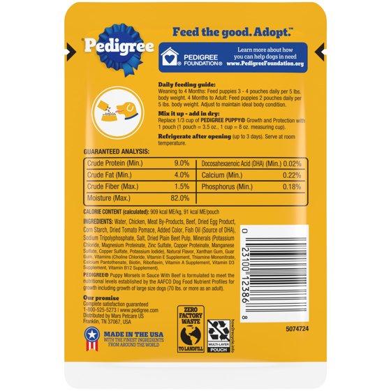 (4 pack) Pedigree Puppy Morsels With Beef Wet Puppy Food, (16) 3.5 oz Pouch