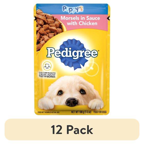 (12 pack) Pedigree Puppy Wet Dog Food Morsels in Sauce With Chicken, 3.5 oz Pouch