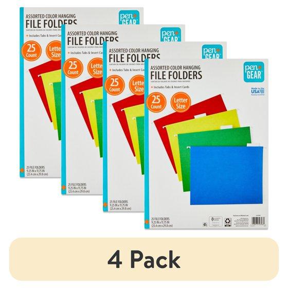(4 pack) Pen+Gear Letter Size Hanging File Folders, 25 Count, Assorted Colors