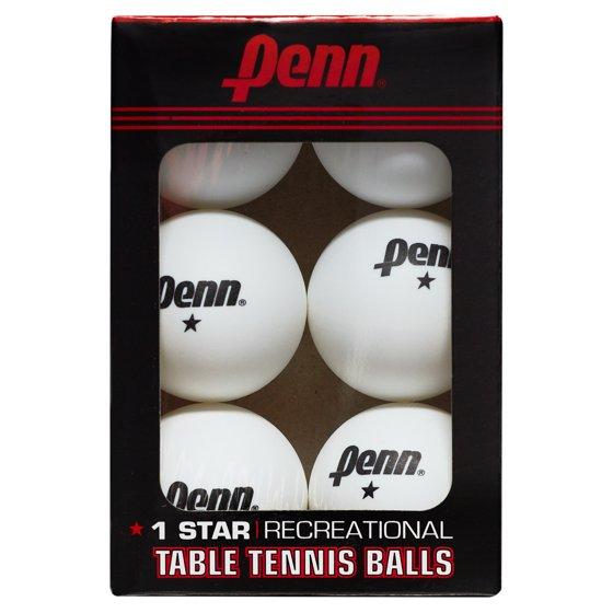 Penn 40mm 1-Star White Table Tennis Balls; Box of 6 Official Tournament Size Ping Pong Balls