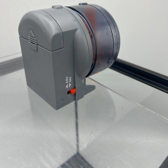 This daily automatic fish feeder from Penn-Plax makes maintaining a healthy feeding schedule easy. Simply fill with fish food flakes, set, and forget and the feeder will dispense the correct daily feed amount for your fish. This is great for short vacations or those with hectic schedules. The Daily Double automatic fish feeder comes with an on/off switch and automatically dispenses flake or pellet food twice a day. Large capacity food drum holds enough food to last up to 4 weeks, as well has an adjustable setting for food portions and portion control. Improved model now includes a silica gel pack and a glue dot to adhere it to the drum to avoid clumping. This will help keep your flakes dry and free flowing. Has a secure base, it can be free-standing or clamps onto any tank, and is battery operated. Measurements: 2"x 2"x 3" Assembled Product Weight: 0.5 lb