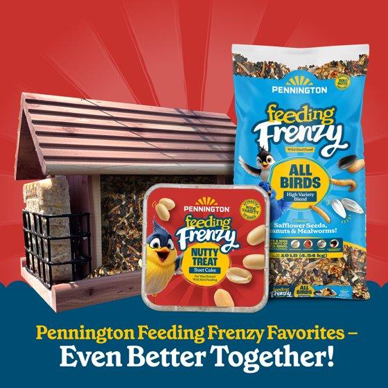 This suet for birds brings moments of joy, color, and connection to your backyard—and Pennington’s Feeding Frenzy Nutty Treat Suet Cake makes it even more rewarding. Perfect for bird lovers and those who enjoy bird watching. Packed with flavorful peanut pieces, this suet cake, this wild bird food for outside feeders attracts energetic backyard favorites like titmice, nuthatches, chickadees, and woodpeckers. Formulated with the highest fat content for the most efficient energy, this suet cake provides essential fuel birds need all year long. In winter, high-fat calories help birds stay warm through freezing temperatures. In spring, they power busy days of nesting and feeding young. In summer, birds need extra energy to stay active through the heat. And in fall, birds bulk up for migration or prep for winter—this suet supports it all. The Nutty Treat Suet Cake leaves no waste behind in suet feeders. Simply unwrap and place in a wire suet bird feeders to attract birds. Pair with Feeding Frenzy’s All Birds High Energy Blend in Pennington’s Copper Roof or EZ Feeder for a complete bird-feeding experience.