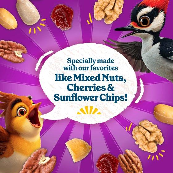 - NUT BLEND: The wild bird feed is made with mixed nuts, cherries, and sunflowers
