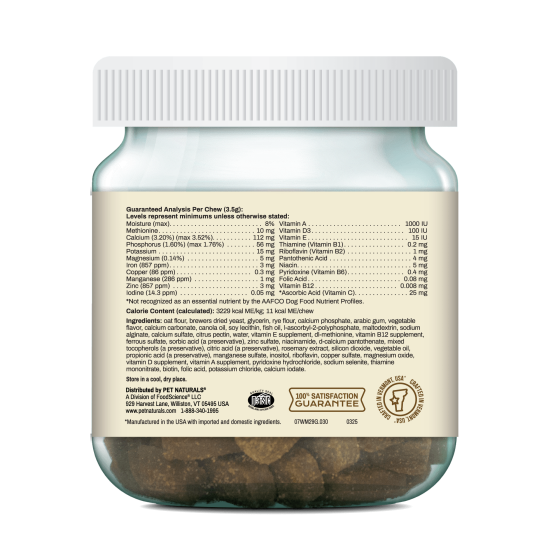 - 30-count jar of daily multivitamin supplement chews for dogs.