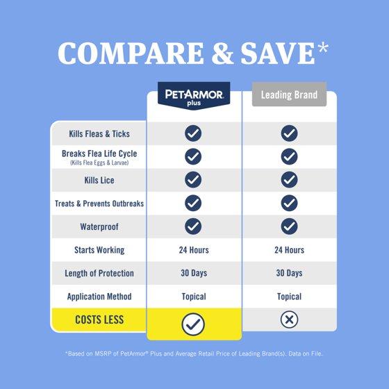 - Effective, Waterproof Flea Treatment for Dogs: PetArmor Plus is a waterproof, flea and tick treatment for dogs that provides topical prevention that kills fleas, eggs, larvae, ticks, chewing lice for up to 30 days after application