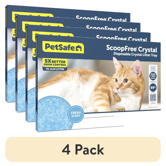 (4 pack) PetSafe ScoopFree Crystal Disposable Cat Litter Tray, Fresh Scent, Silica Crystals, 1-Pack, Blue