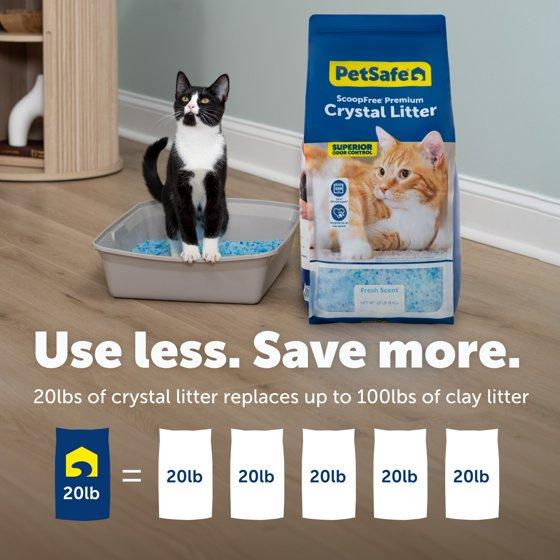 - Use Less, Save More: 20 lbs of crystal litter replaces 100 lbs of traditional clay litter, lasting up to 5 months in a single-cat household