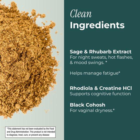 - Sage and Rhubarb Extract support the reduction of night sweats, hot flashes and mood swings.