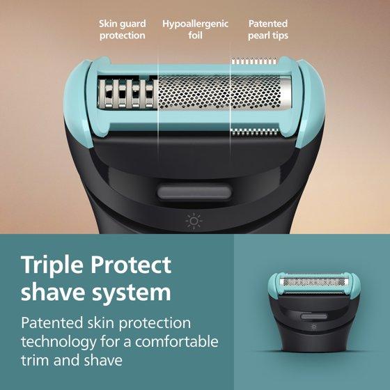 - Skin-friendly body shave: the Triple Protect shave system has patented pearl tips, hypoallergenic shaver foil and a skin guard for comfort across the body, even in intimate areas