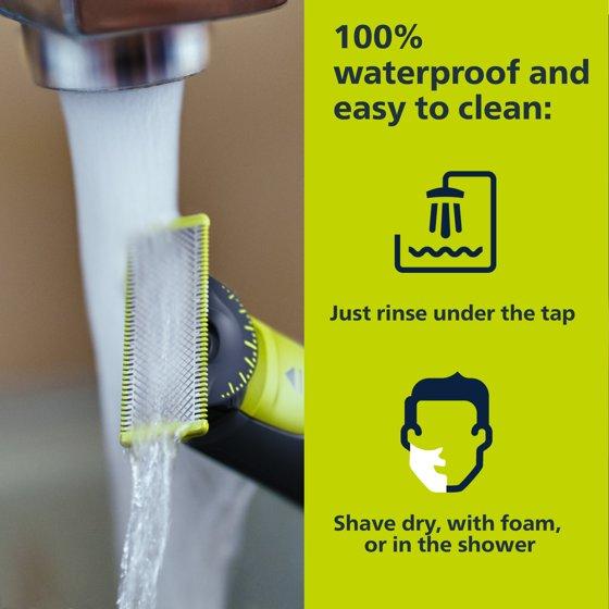 The Philips Norelco OneBlade 360 is a revolutionary new electric grooming technology designed for men who wear facial styles, beards, or stubble. Its dual- protection system, a glide coating combined with rounded tips, makes shaving easier and comfortable. Its shaving technology features a fast-moving cutter (12000x per min) so it's efficient, even on longer hairs. The innovative 360 Blade can flex in all directions to adjust to the curves of your face. The design enables constant skin contact and control. Easily trim and shave hard‐to‐reach areas, with fewer strokes and greater comfort. Create precise edges with the dual-sided blade. You can shave in either direction to get great visibility and see every hair that you're cutting. Line up your style in seconds! OneBlade doesn't shave as close as traditional blade - so your skin stays comfortable. Unique 5-in-1 open comb design provides an efficient trim without clogging and interrupting your routine, even on long and thick hair. OneBlade is fully waterproof, so it is easy to clean. Just rinse it under the tap. You can shave wet or dry, even in the shower. No shaving foam needed. Stainless steel blade lasts up to 4 months of use** to keep that fresh feel. An eject icon will appear on the blade when it's time to consider changing the blade for the best shaving experience. Fully rechargeable, the OneBlade 360 Face delivers 45 minutes of continuous shaving power after an 8-hour charge. Comes with
