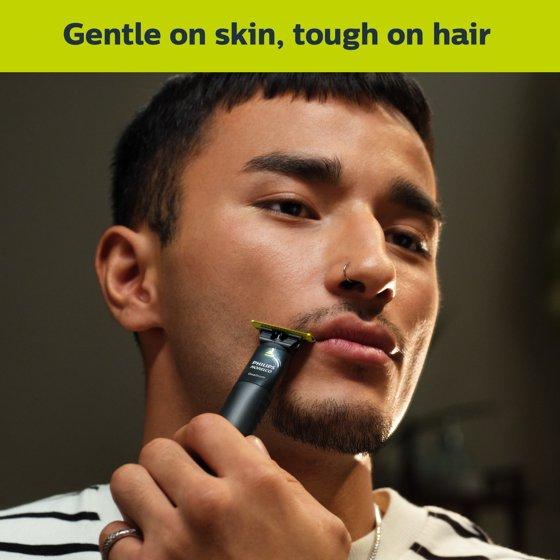 The Philips Norelco OneBlade Original Face is a powered hybrid electric razor and styler that can shave, edge, and trim any length of hair. Add OneBlade Original Face to your shaving and grooming routine or use it alone to easily create and look you want. OneBlade doesn't shave as close as a traditional blade - so your skin stays comfortable. OneBlade follows the contours of your face, allowing you to easily and comfortably shave all areas. Use the dual-sided blade to style your edges and create clean lines by moving the blade in any direction or go against the grain to shave it all off comfortably. Trim your beard to a precision stubble length with one of the included 3 stubble combs: 1mm for a 5 o'clock, 3mm for a tight trim, and 5mm for a long stubble. The OneBlade Original Face includes a durable stainless steel blade that lasts up to 4 months of use. * When the replacement indicator - eject icon - appears on the blade, the blade performance may no longer be optimal and you know it's time change the blade to keep that fresh feel. OneBlade is 100% waterproof, so it is easy to clean: just rinse it under the tap. You can shave wet or dry, even in the shower - whichever you prefer. You don't even need shaving cream. USB-A rechargeable battery delivers 30 minutes of constant shaving power after an 8 hour charge. Look for it in the manual razor aisle. 1 OneBlade Handle, 1 Original Blade, 3 Stubble Combs (1, 3, 5mm), 1 USB-A Charging Cord (adapter not included), 1 Protective Cap