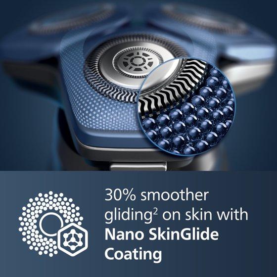 Philips Norelco Shaver delivers superior closeness and personalized skin comfort, with SenseIQ technology. Philips Norelco Shaver delivers a smooth shave while reducing skin irritation. Only Philips Norelco has ComfortGlide rings, a special anti-friction coating to protect your face from redness and irritation. Electric shaver, UV sanitizing cube, travel case and power cord (wall adapter not included)