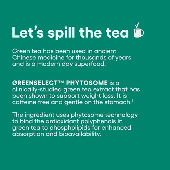 - Supports Weight Management: In a Clinical study, 100 patients lost an average of over 30 lbs. in 90 days taking 300 mg of stimulant-free Greenselect Phytosome daily with a reduced-calorie diet & exercise. Greenselect is a green tea caffeine free extract. Packaging may vary.