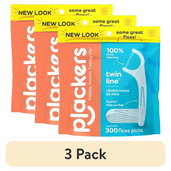 (900 pack) Plackers Twin Line Dental Floss Picks, Dual-Line Tuffloss, Cool Mint Flavor, 300 Count