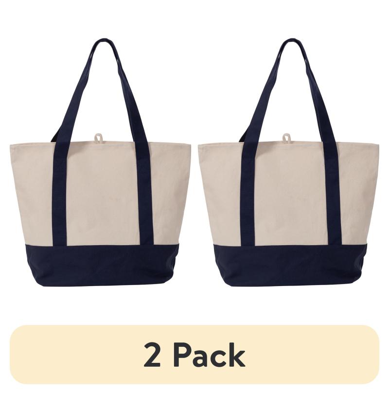 (2 pack) Planet E Canvas Tote Bag, Reusable Grocery Bag, Shopping Bag Eco-Friendly