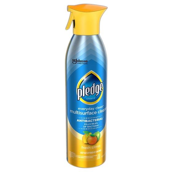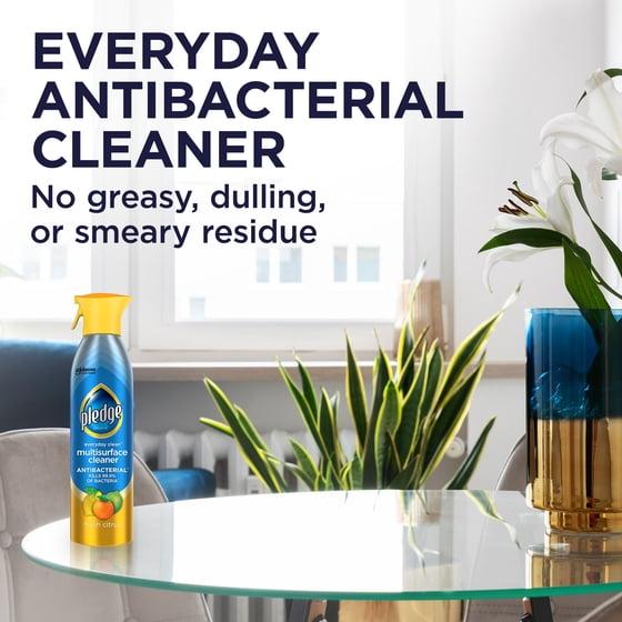 Shine, polish and repel dust with this 9.7-ounce multi-surface antibacterial everyday cleaner. This spray is usable on marble, granite, wood, laminate, stainless steel, electronics, and most other hard surfaces. This Pledge multi-surface antibacterial everyday cleaner contains no CFCs and features a citrus scent that is sure to delight, while the spray nozzle makes it simple to use.