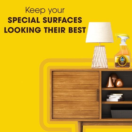 - Keep your special surfaces looking their best, with Pledge® Expert Care™ furniture cleaner