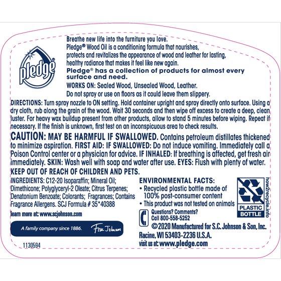 - Pledge® Expert Care™ Wood Oil is a conditioning formula that nourishes, protects, and revitalizes the appearance of wood