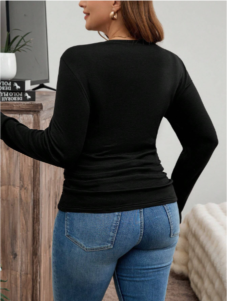 Plus Size Winter Clothes Thickened Round Neck Fitted Long Sleeve Thermal T-Shirt