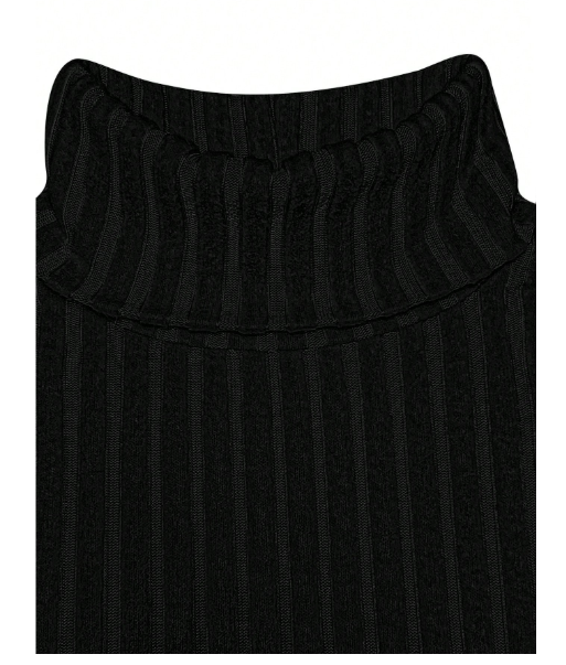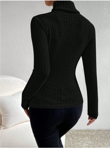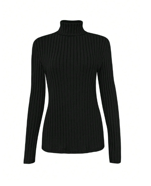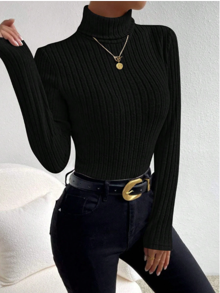 Plus Size Women Turtleneck Solid Color Casual Ribbed Knit Long Sleeve T-Shirt