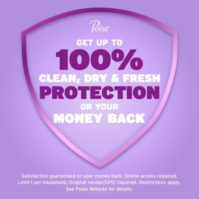 Poise® Money Back Guarantee Poise® Money Back Guarantee Purchase a Poise® product (excluding One by Poise and Poise Impressa) and if you are not completely satisfied, we’ll give you your money back. Here’s how to get your money back: Step 1: Enclose all of the following in an envelope: a. Print and complete this Poise® Money Back Guarantee Form CLICK HERE b. Original store register receipt with a Poise® product (excluding One by Poise and Poise Impressa) purchased between 1/1/24 - 12/31/24 c. Include the original UPC from the package in the envelope. Step 2: Mail all items listed above within 30 days of your purchase date with the proper postage to: Poise® Money Back Guarantee PO Box 735 North Branford, CT 06471