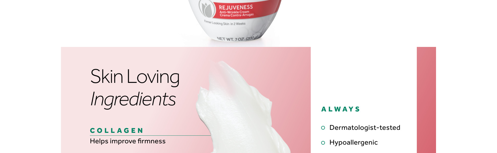 - Collagen helps support skin’s natural firmness and elasticity