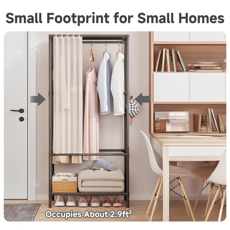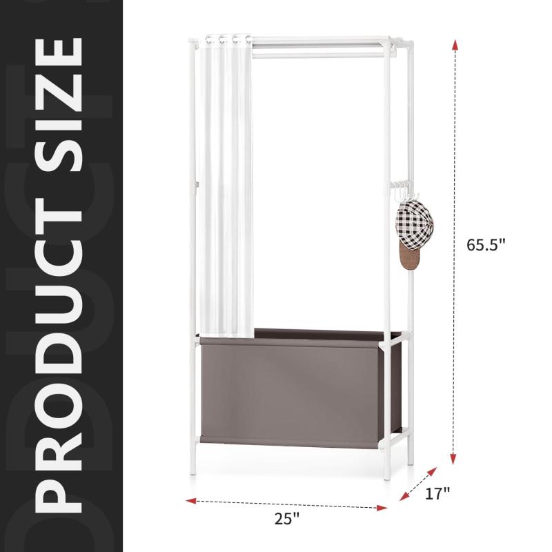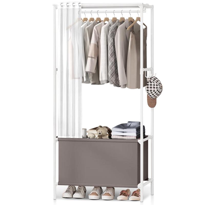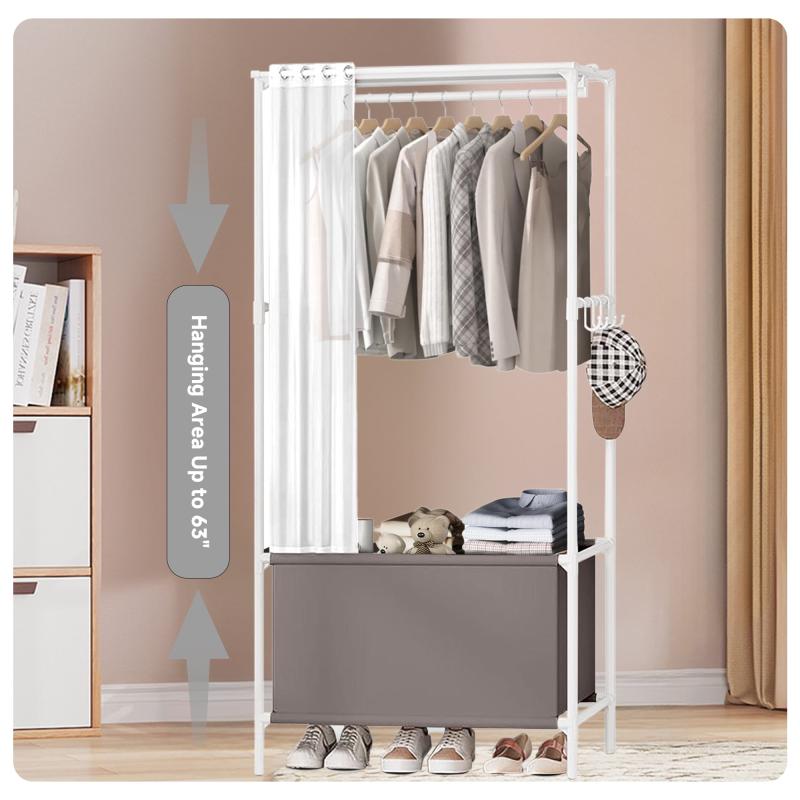 This clothes rack provides semi-open storage space for your clothes, with multiple storage areas and dust curtains, making it easier for you to select clothes and store items. -