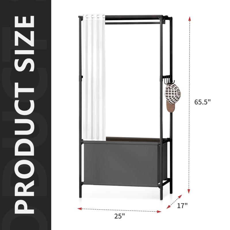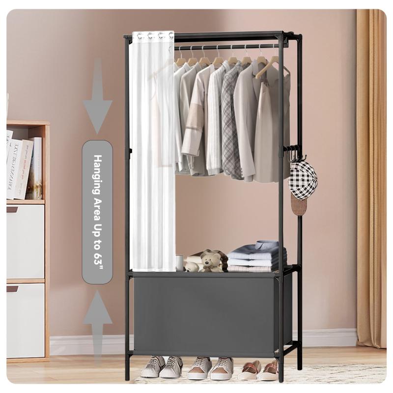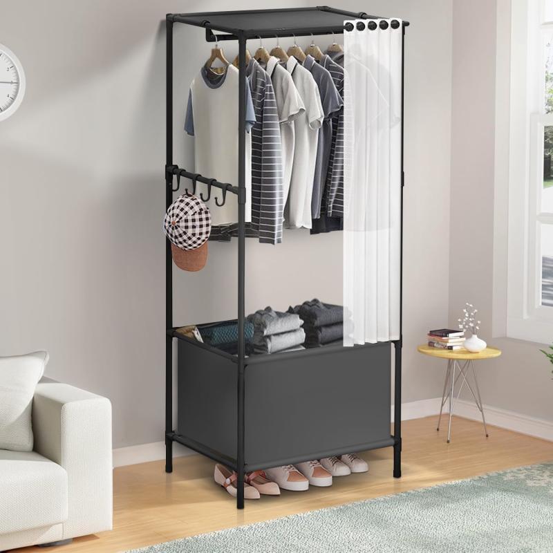 This clothes rack provides semi-open storage space for your clothes, with multiple storage areas and dust curtains, making it easier for you to select clothes and store items. -