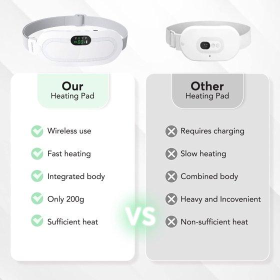 - 【Quiet & Skin-friendly Design】The wireless heating pad operates quietly and noiselessly. You can use it while working or studying. However, we don't recommend using it while sleeping due to the risk of low temperature burns. The heat pad for cramps is crafted from skin-friendly soft plush, and its waistband is adjustable up to 50", making it comfortable for women and girls to use without worry.