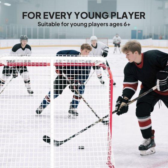 - Regulation-Size Design for Realistic Youth Training: With dimensions of 69.5” W x 48.2” H x 26.8” D, this goal offers an authentic training experience for young athletes.Its size is perfect for practicing wrist shots, slap shots, and stickhandling drills, helping players develop accuracy, power, and game-ready skills in the driveway, backyard, or local park.