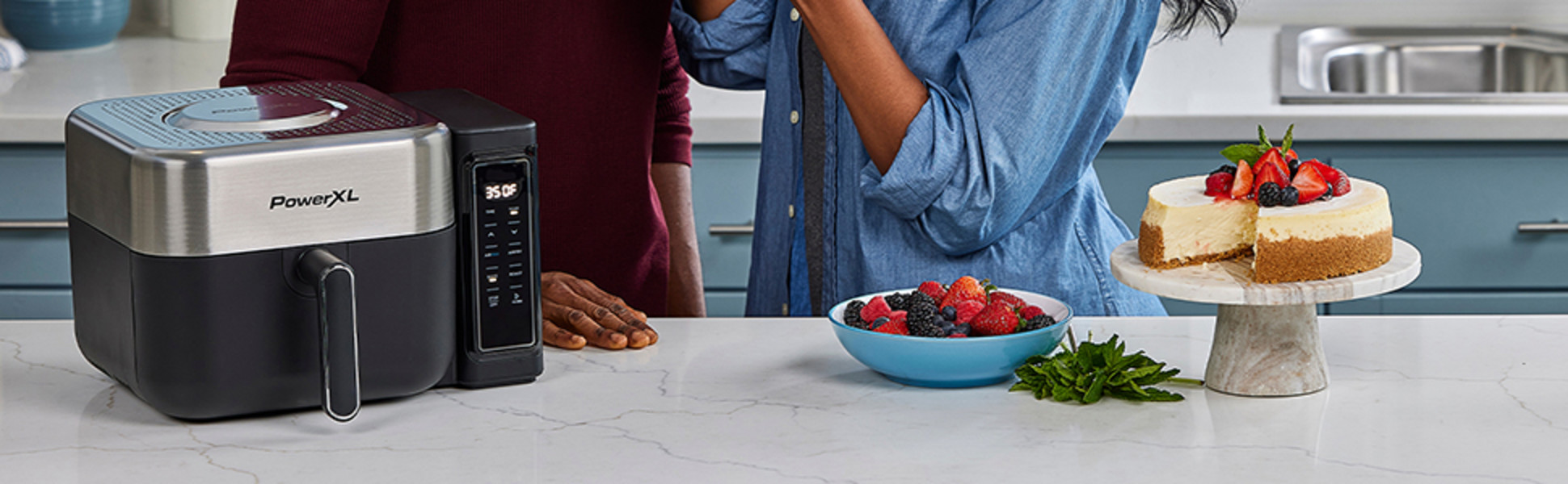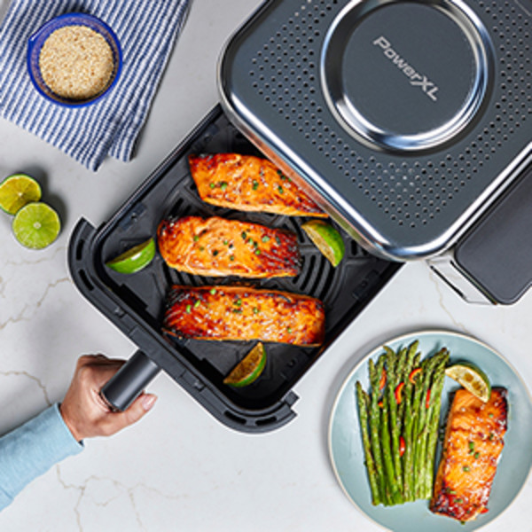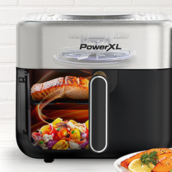 PowerXL 6.3 Quart AirMax Air Fryer Oven with Four Presets and Compact Two-Tier Design, 450F Maximum Temperature, No Preheat Needed