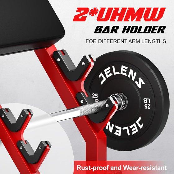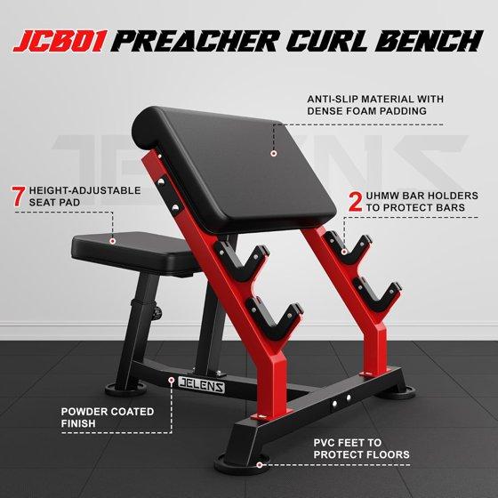 - 【Targeted Arm Isolation for Maximum Efficiency】:Preacher Curl Bench Unique angled design locks arms in optimal position, effectively isolating biceps and triceps to maximize muscle engagement. Equipped with 6 integrated bar holders for easy switching between barbell and dumbbell workouts.