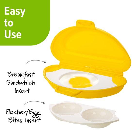 Make flavorful omelets, perfectly poached eggs, egg patties or easy egg bites quickly and effortlessly with the Prep Solutions Microwave 4-in-1 Egg Cooker. Simply insert your ingredients and eggs into the container, close the lid, and pop into the microwave. Voila! A complete and nutritious meal. The cooker also houses all the pieces for easy storage. The cooker is constructed of a high heat, BPA free plastic. It's dishwasher safe so clean up is easy.