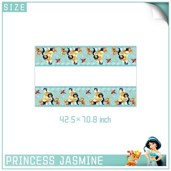 - The tablecloth featured in Jasmine's birthday party decorations is stunning. If you're looking for a hassle-free birthday party, this Jasmine set is the perfect choice.