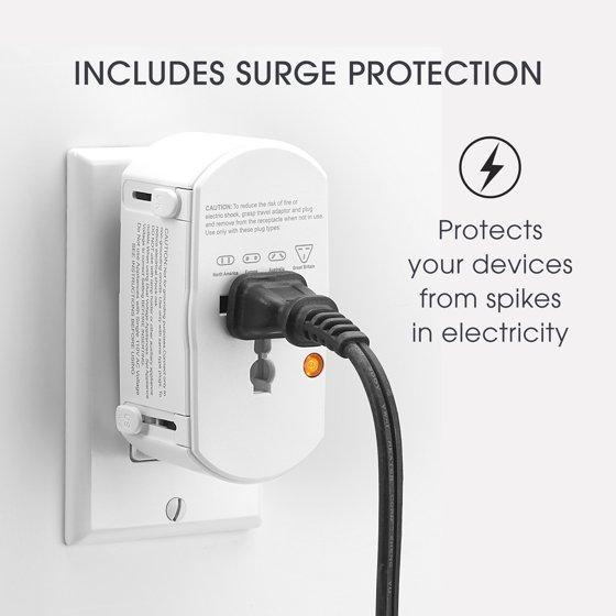 - Built-in surge protection safeguards appliances from spikes in electricity
