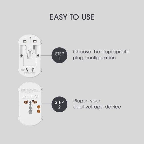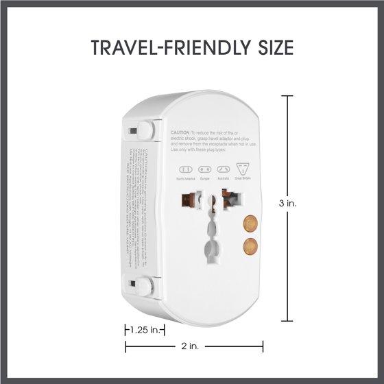- Compatible with dual voltage appliances such as cell phones, cameras, laptops, and tablets