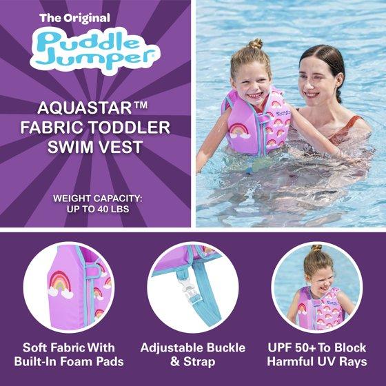 Puddle Jumper AquaStar Fabric Toddler Swim Vest, Rainbow, Up to 40 lbs Weight Capacity