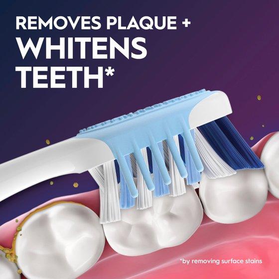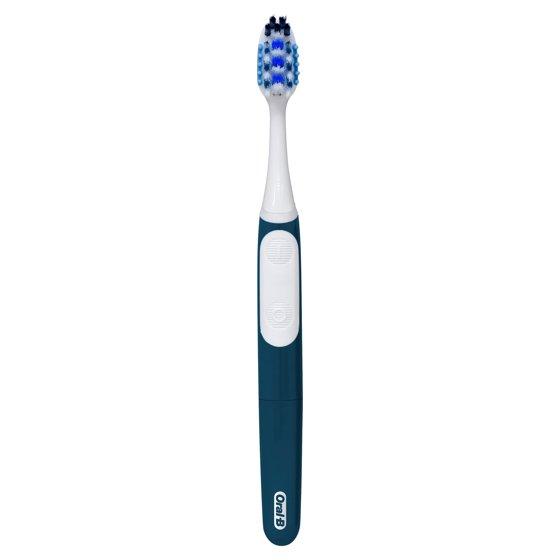 Battery-Powered Advanced All-in-One The Oral-B Pulsar Advanced All-in-One toothbrush provides a complete cleaning experience by both removing plaque and whitening teeth*. You will receive 1 Oral-B Pulsar Advanced All-in-One toothbrush that features soft bristles, which are gentle on your gums and enamel, making it a safe choice for daily use. This toothbrush is also battery powered with a built-in battery, on and off buttons, and a slim handle, offering a convenient and enjoyable brushing experience. Removes Plaque in Hard-to-Reach Areas The Oral-B Pulsar Advanced All-in-One toothbrush features CrissCross bristles that are tough on plaque, gentle on gums. The CrissCross bristles effectively target plaque in hard-to-reach areas. Bring on superior plaque removal** with the Pulsar Advanced All-in-One. Whiter Teeth* with Sonic Bristle Vibrations Additionally, this toothbrush provides you with whiter teeth* through its sonic bristle vibrations. Unlike regular manual toothbrushes, Pulsar Advanced All-in-One's sonic bristles vibrate and polish away surface stains. For best results, change your toothbrush every 90 days. A new toothbrush cleans 95% better in hard-to-reach areas than one three months old***. Oral-B is the #1 toothbrush brand most recommended by dentists worldwide. *by removing surface stains **vs. a regular manual toothbrush ***research with a flat trim manual toothbrush
