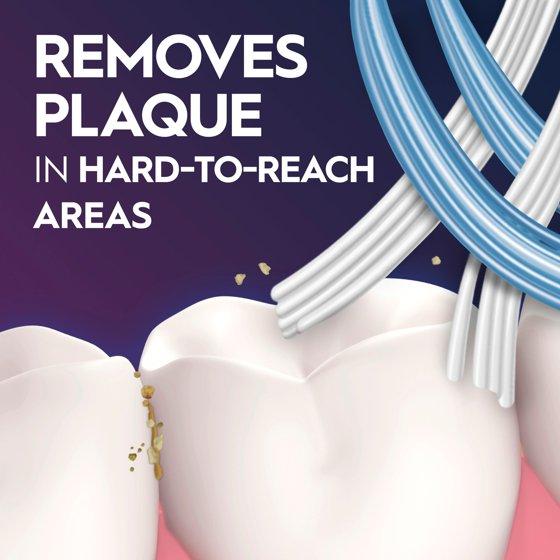 - Removes plaque in hard-to-reach areas