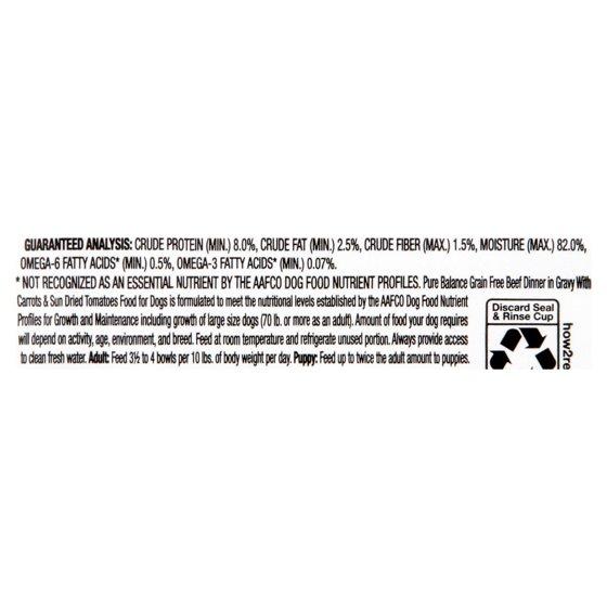 Pure Balance Beef Dinner in Gravy with Carrots & Sun Dried Tomatoes Wet Dog Food, Grain Free, 3.5 oz Cup
