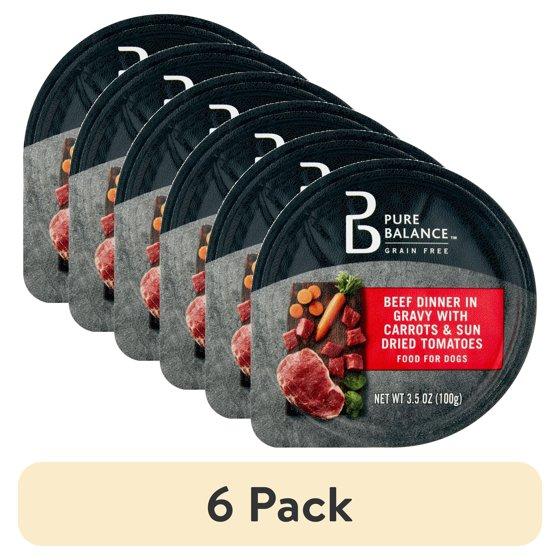 (6 pack) Pure Balance Beef Dinner in Gravy with Carrots & Sun Dried Tomatoes Wet Dog Food, Grain Free, 3.5 oz Cup