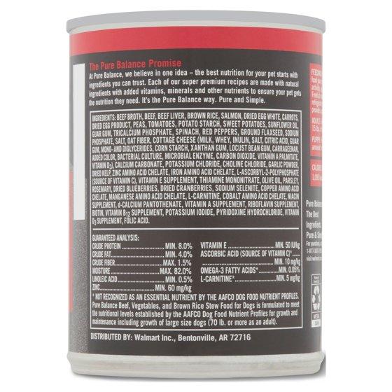 - Pure Balance Beef, Vegetable & Brown Rice Flavor Stew Wet Dog Food for Adult, Grain-Free, 12.5 oz. Can