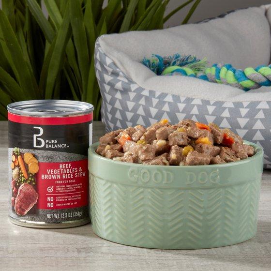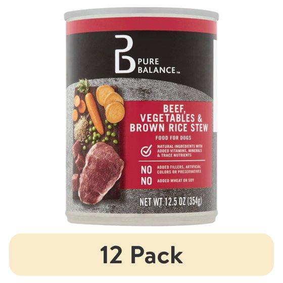 (12 pack) Pure Balance Beef, Vegetable & Brown Rice Flavor Stew Wet Dog Food for Adult, Grain-Free, 12.5 oz. Can